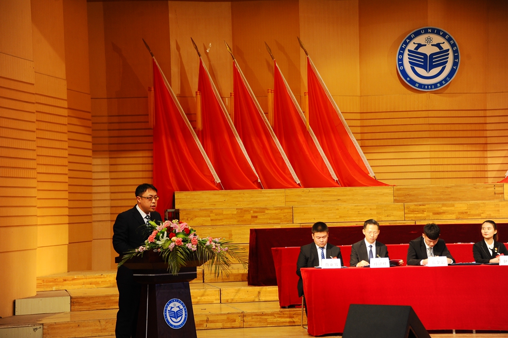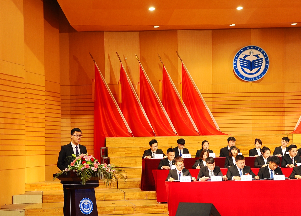 2016级硕士研究生肖添远同学代表beats365全体学生发言,他表示,为一名齐大学子,我们的内心充满了自豪与感慨。而作为当代青年,我们应当做投身祖国建设的践行者,坚定理想、胸怀天下;我们应当做培育优良学风的践行者,勤奋学习,刻苦努力;我们应将自己的追求与党和人民的事业紧密结合,把广大青年学生的思想统一到探索真理、追求卓越上来,为理想贡献青春力量,追梦筑梦,勇于担当。把激昂的青春梦融入到伟大的“中国梦”,用实干和坚守铸就梦想,为beats365早日建成有特色高水平综合大学贡献青春力量。