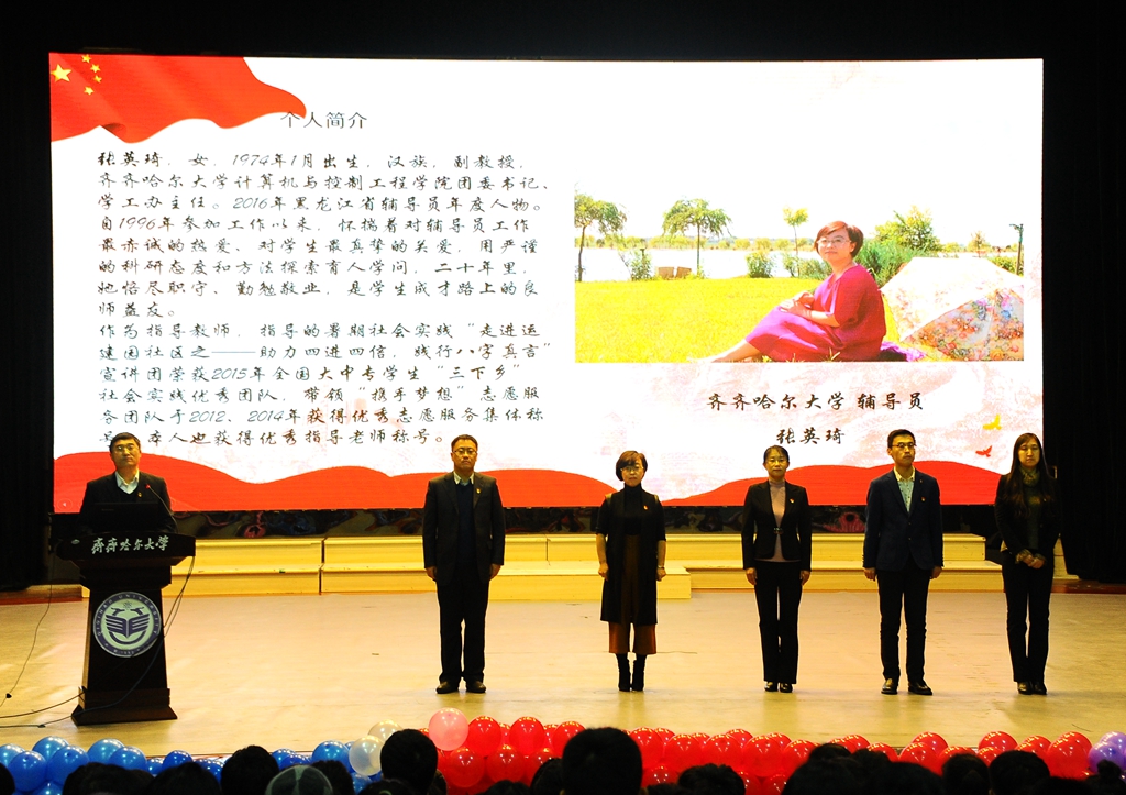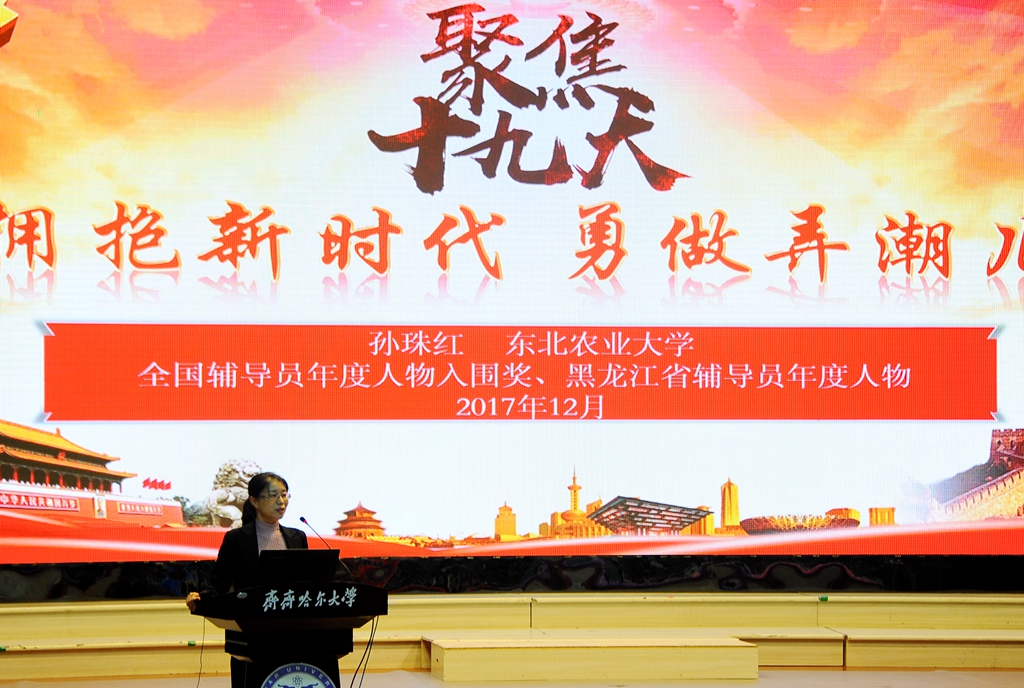 5位全省辅导员年度人物,我省杰出的辅导员代表进行了现场宣讲,哈尔滨工业大学辅导员任源、东北林业大学辅导员乔恩杰、东北农业大学辅导员孙珠红、beats365唯一官方网站辅导员张英琦、黑龙江大学辅导员朱毅,先后以《不忘初心,遇见未来》《坚定文化自信,担当青年使命》《拥抱新时代,勇做弄潮儿》《“中国梦”载着你的青春梦想启航》《新主题、新时代召唤有理想、有本领、有担当的新青年》为主题作了宣讲。他们从学生的实际生活出发,用大学生感兴趣的方式、喜闻乐见的语言,接地气地宣讲党的十九大精神,让师生们对党的十九大精神有了更深刻的理解,更近距离感受到新主题新时代赋予青年一代新的使命和担当。