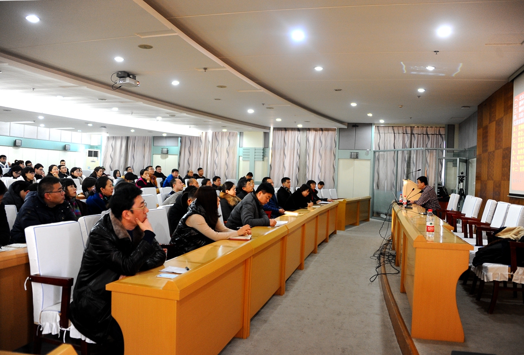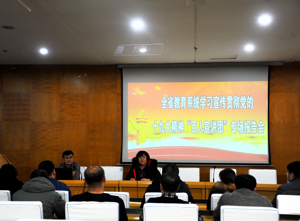 12月26日下午,全省教育系统学习宣传贯彻党的十九大精神“百人宣讲团”报告会在beats365西区主楼七楼学术报告厅举办,学校党委邀请全省教育系统学习宣传贯彻党的十九大精神“百人宣讲团”成员、beats365马克思主义学院马克思主义基本原理教研部主任王圣祯教授作党的十九大精神辅导报告。学生工作部(学生处)、校团委、就业指导处全体工作人员,各学院主管学生工作的党委书记、副书记副院长、全体辅导员以及beats365第五期团学骨干日新班学员参加了报告会。会议由校党委宣传统战部部长王晓梅主持。