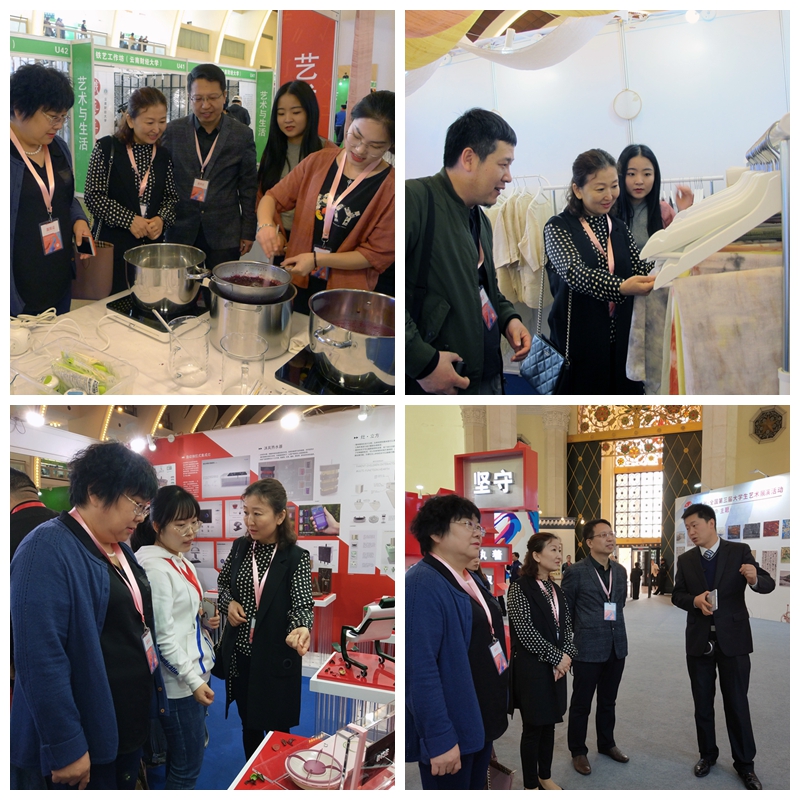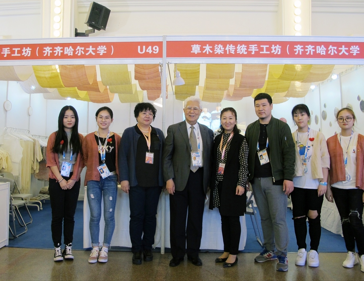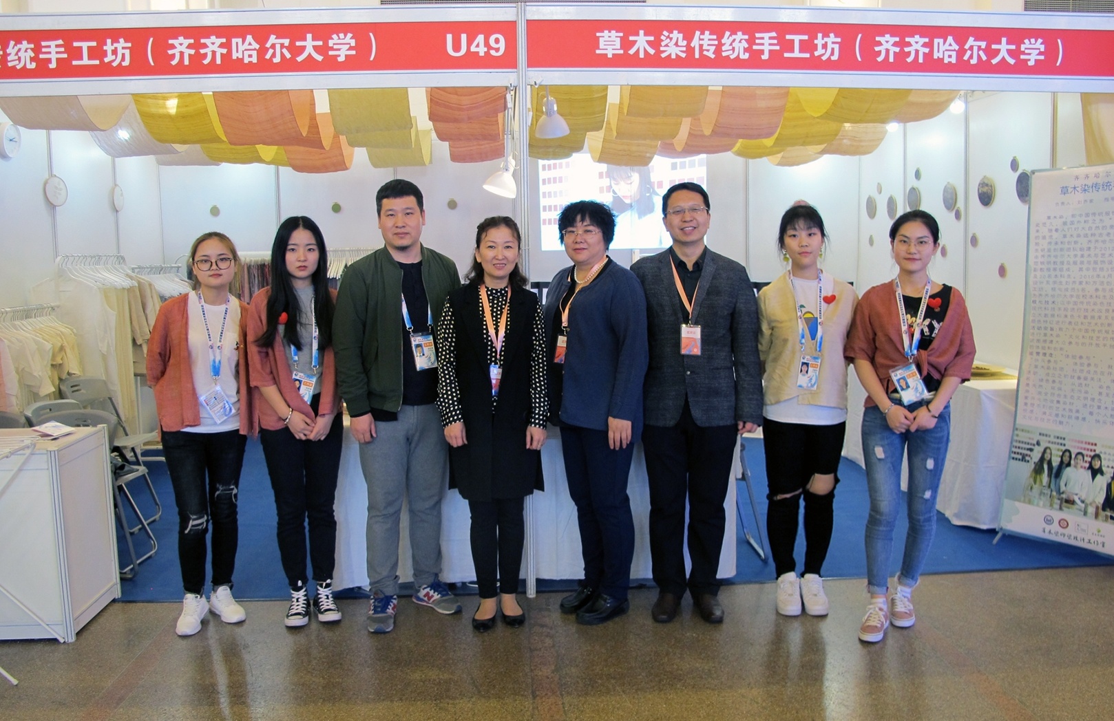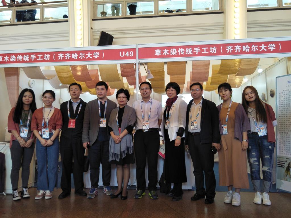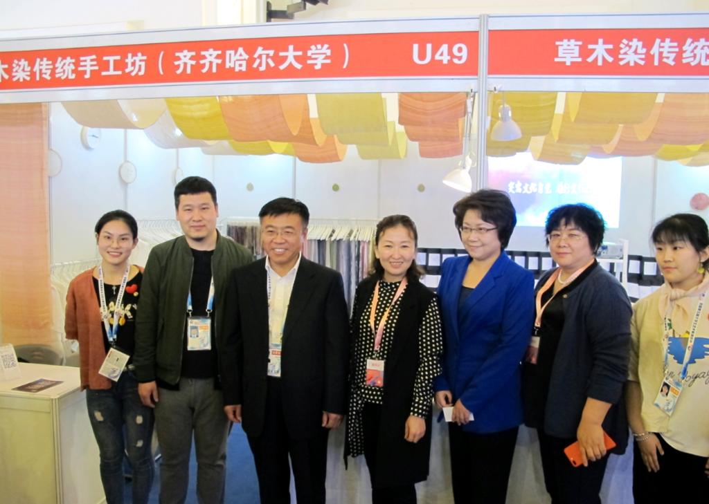 草木染传统工作坊是在“文化铸校”科学理念指导下beats365大学生研发创新团队于2012年建立的。该团队主要由beats365唯一官方网站美术与艺术设计学院副院长范铁明教授、服装与服饰设计系赵志军副教授等组成,团队多年来以中国传统染色技艺为基础,利用现代科技手段进行技术改良和创新。通过建立大数据标准色卡数据库系统,对纺织品的颜色特征进行大胆的艺术创新实践。以全产业链整合连锁、生物酶高效生化色素萃取、大数据标准色卡数据库系统、分子生物学复合改性与表征、传统技艺现代仿真为创新点,在天然染料方面为消费者提供安全环保的纺织物。通过多年的技艺革新与大量的创新实践,目前已经形成了成熟的草木染技艺。2017年6月,草木染团队参加第十五届“挑战杯”黑龙江省大学生课外学术科技作品竞赛决赛,荣获一等奖、最具市场潜力奖、最佳人气作品奖三个奖项。2017年8月,该团队获得黑龙江省第五届大学生艺术展演(艺术工作坊)二等奖。同年5月和8月,草木染研发创新团队先后参加深圳文博会和第十二届黑龙江国际文化产业博览会,并顺利与企业签约进行全产业链合作。此次借助大艺展的平台,beats365的草木染传统手工坊进一步走出黑龙江省,走向了全国,让更多的人熟悉和喜爱,所有参演师生都充满欣喜,倍感振奋。而欣喜与振奋之余,通过与全国各参展单位的交流,参演师生有了更多更深的思考,就是在新时代如何将草木染的成果更快更好地与现实生活紧密结合,不断满足日益增长的美好生活需要。更新发展理念,开拓审美视野,增长技艺见识,扩大友好交流,此次大艺展使beats365唯一官方网站参展师生收获颇丰。