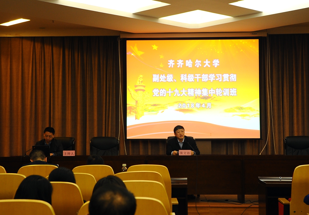 4月27日下午,全校副处级、科级干部学习贯彻党的十九大精神集中轮训班在德润大厦四楼会议室结业,结业式由党委组织部副处级组织员徐海祥主持。
