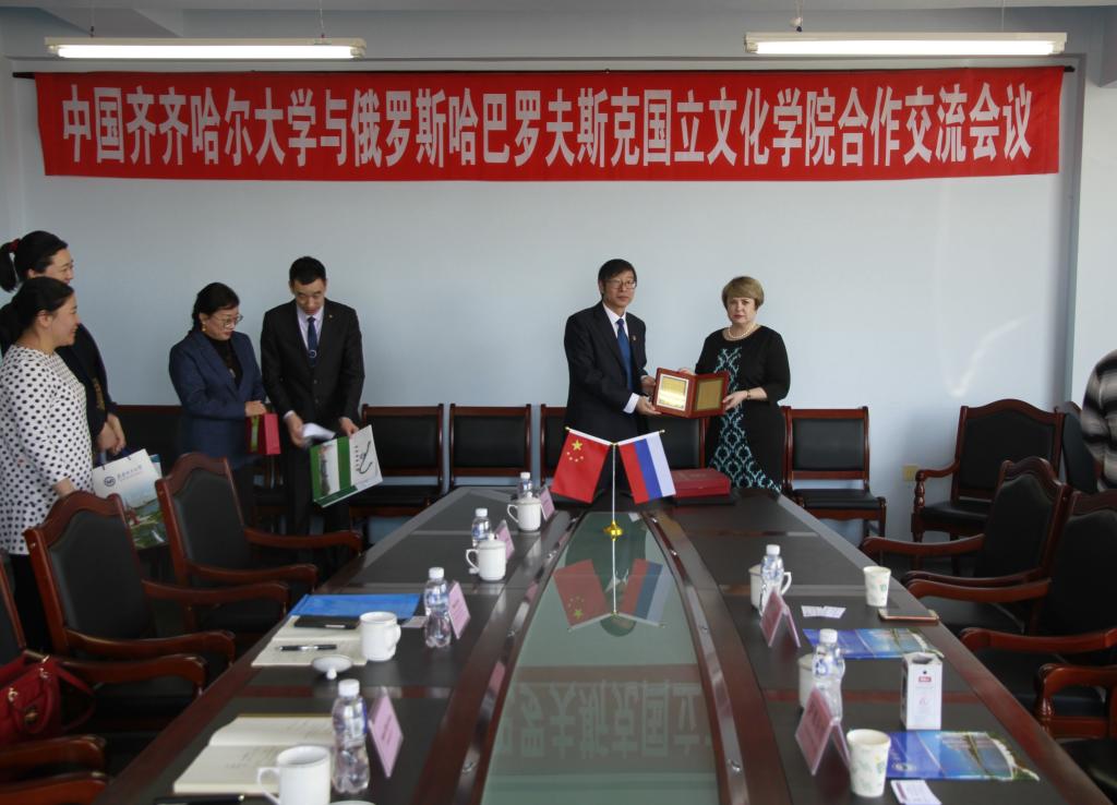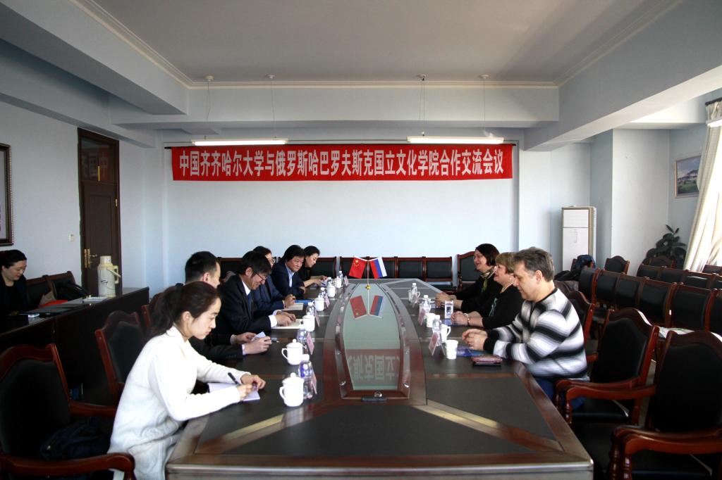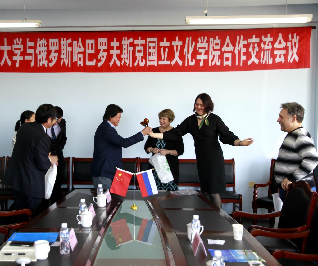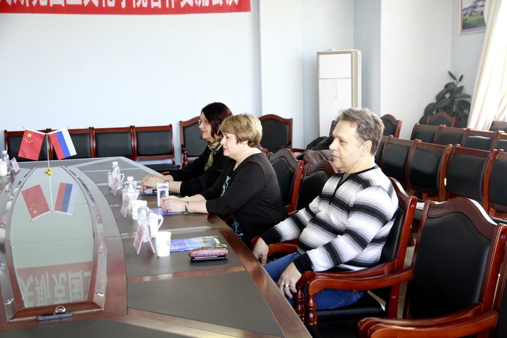 国际交流合作处处长张坤、音乐与舞蹈学院院长孙相根、音乐与舞蹈学院音乐表演系主任朱艳彬、音乐与舞蹈学院舞蹈系主任李美虹、国际交流合作处综合办公室副主任郭欣 、哈巴罗夫斯克国立文化学院芭蕾舞教研室主任叶列谢科、哈巴罗夫斯克国立文化学院音乐艺术教研室主任梅金切娃及国际交流合作处相关工作人员参加了座谈会。