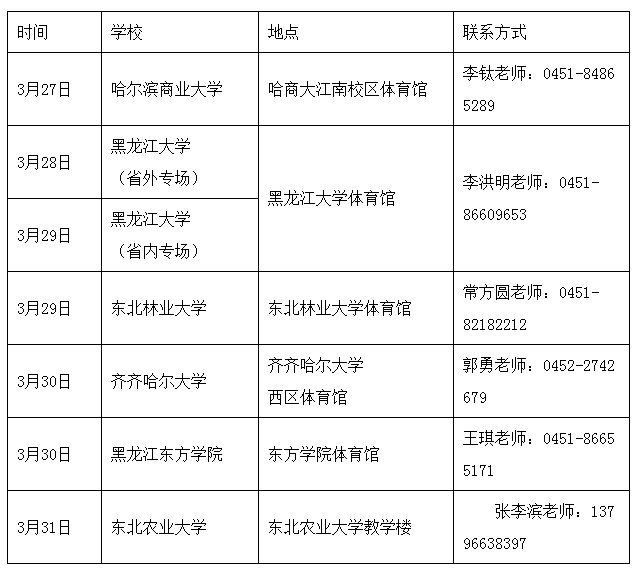 附:同期黑龙江省份部分高校招聘会安排(以召开时间先后为序)