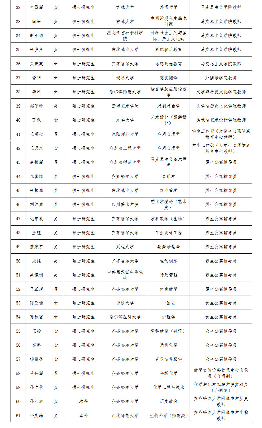 按照《黑龙江省事业单位公开招聘工作人员实施细则》的规定,根据《beats365唯一官方网站2019年下半年公开招聘人员公告》及《beats365唯一官方网站附属中学2019年公开招聘教师公告》中明确的原则、程序和方法,现将拟聘用人员予以公示。如对公示人员有异议,可在公示期内反映,反映情况和问题必须实事求是,应签署或告知真实姓名、工作单位和联系方式;对线索不清的匿名信和匿名电话,公示期间不予受理。