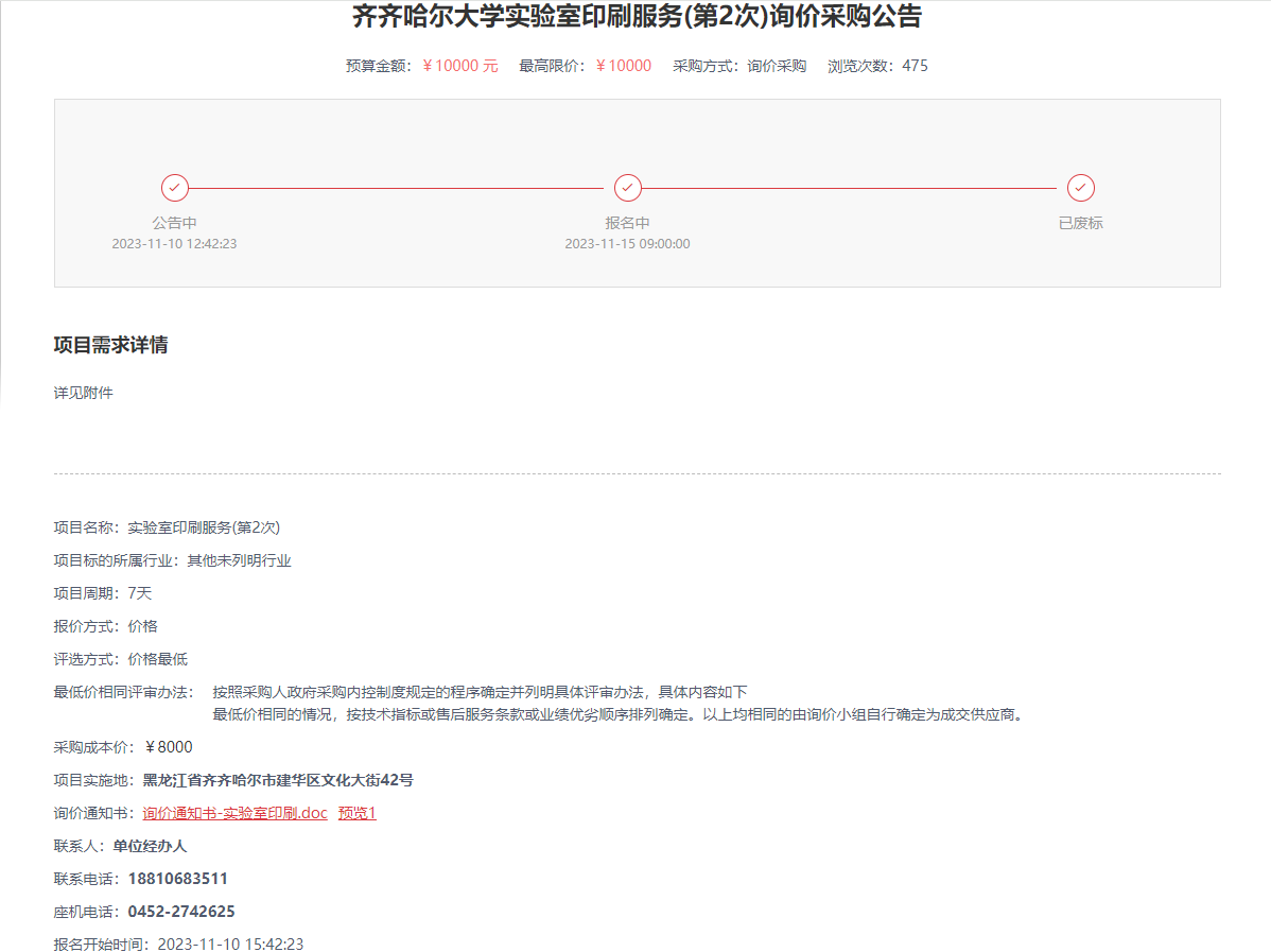 上一条:beats365唯一官方网站实验室印刷服务(第3次)询价采购公告(转自黑龙江省政府采购网)
