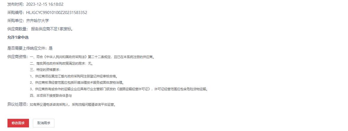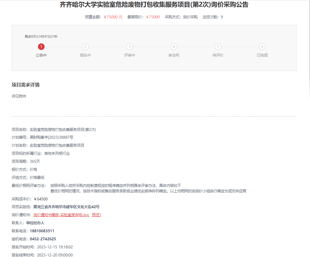 下一条:beats365唯一官方网站beats365唯一官方网站实验室危险废物打包收集服务项目询价采购公告(转自黑龙江省政府采购网)
