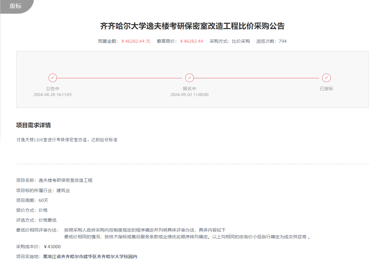 下一条:beats365唯一官方网站逸夫楼考研保密室改造工程比价采购公告(转自黑龙江省政府采购网)