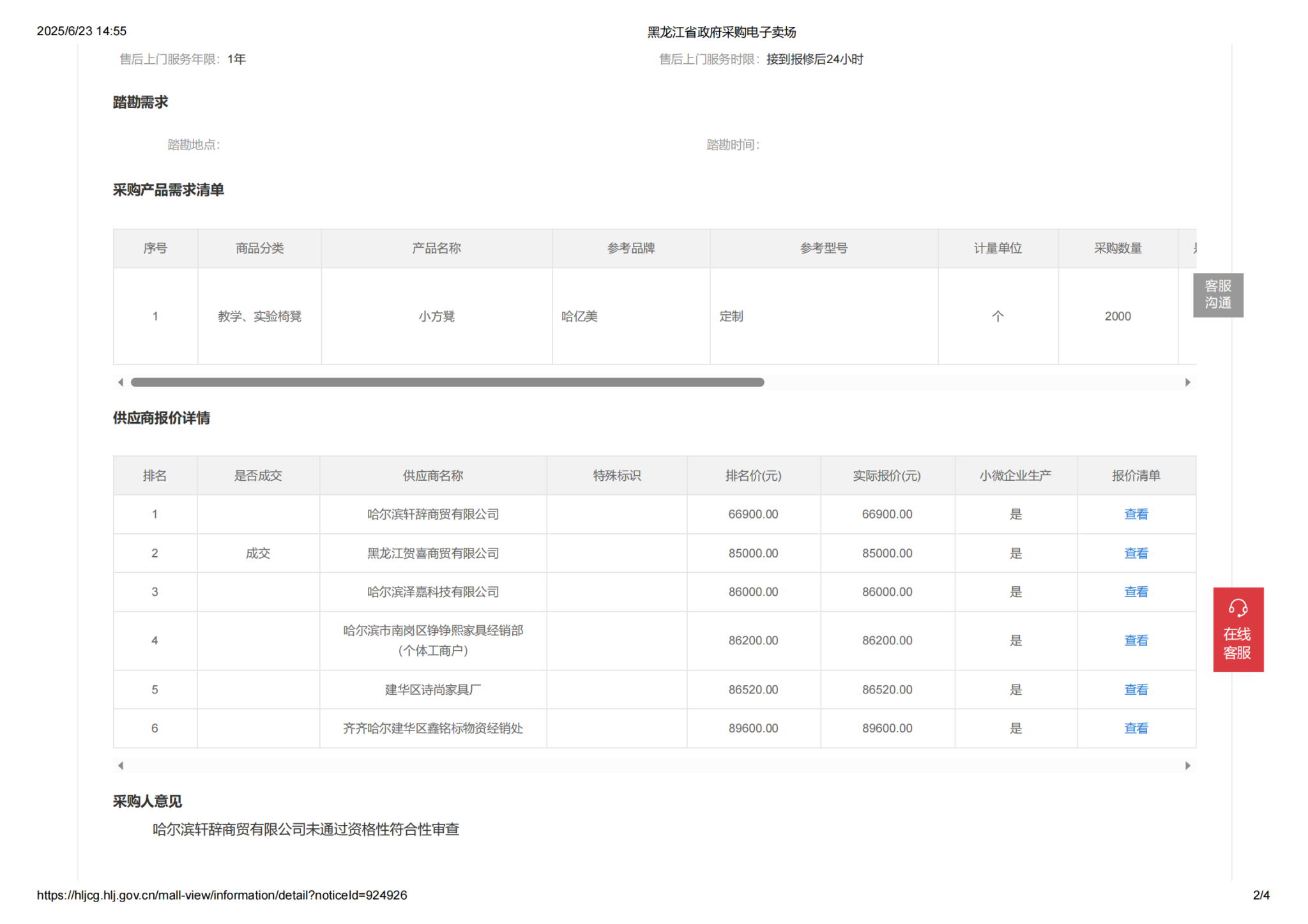 下一条:beats365唯一官方网站2025年学生公寓单人学习桌比价比价采购成交公告(转自黑龙江省政府采购网)