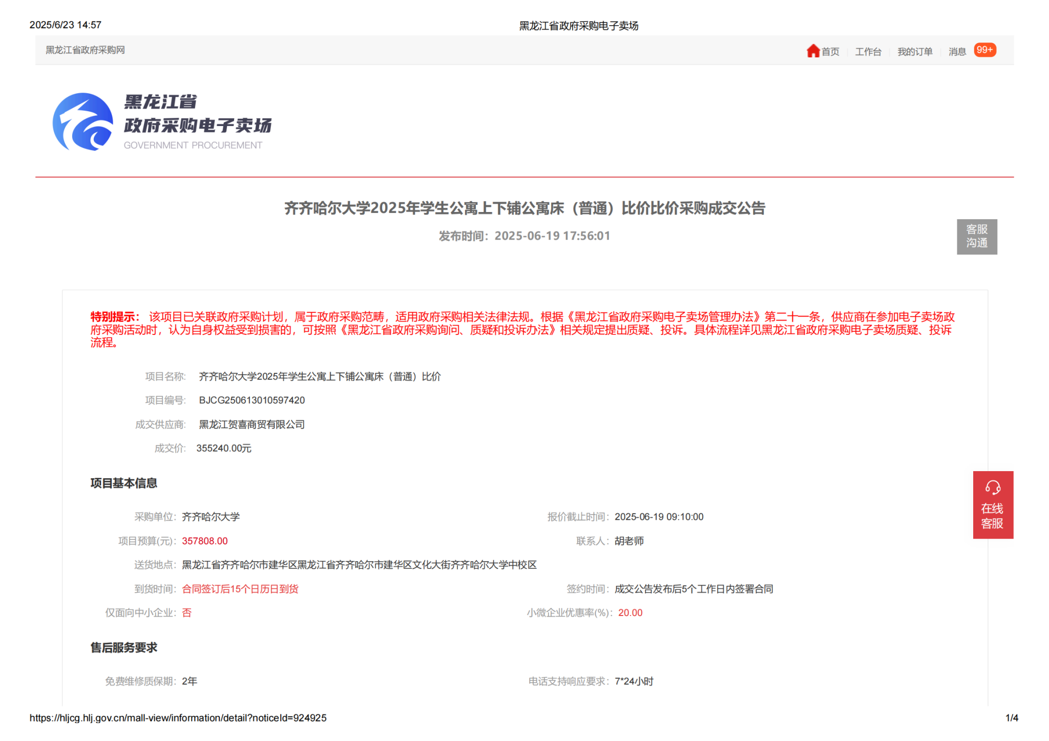 下一条:beats365唯一官方网站2025年学生公寓小方凳采购比价比价采购成交公告(转自黑龙江省政府采购网)