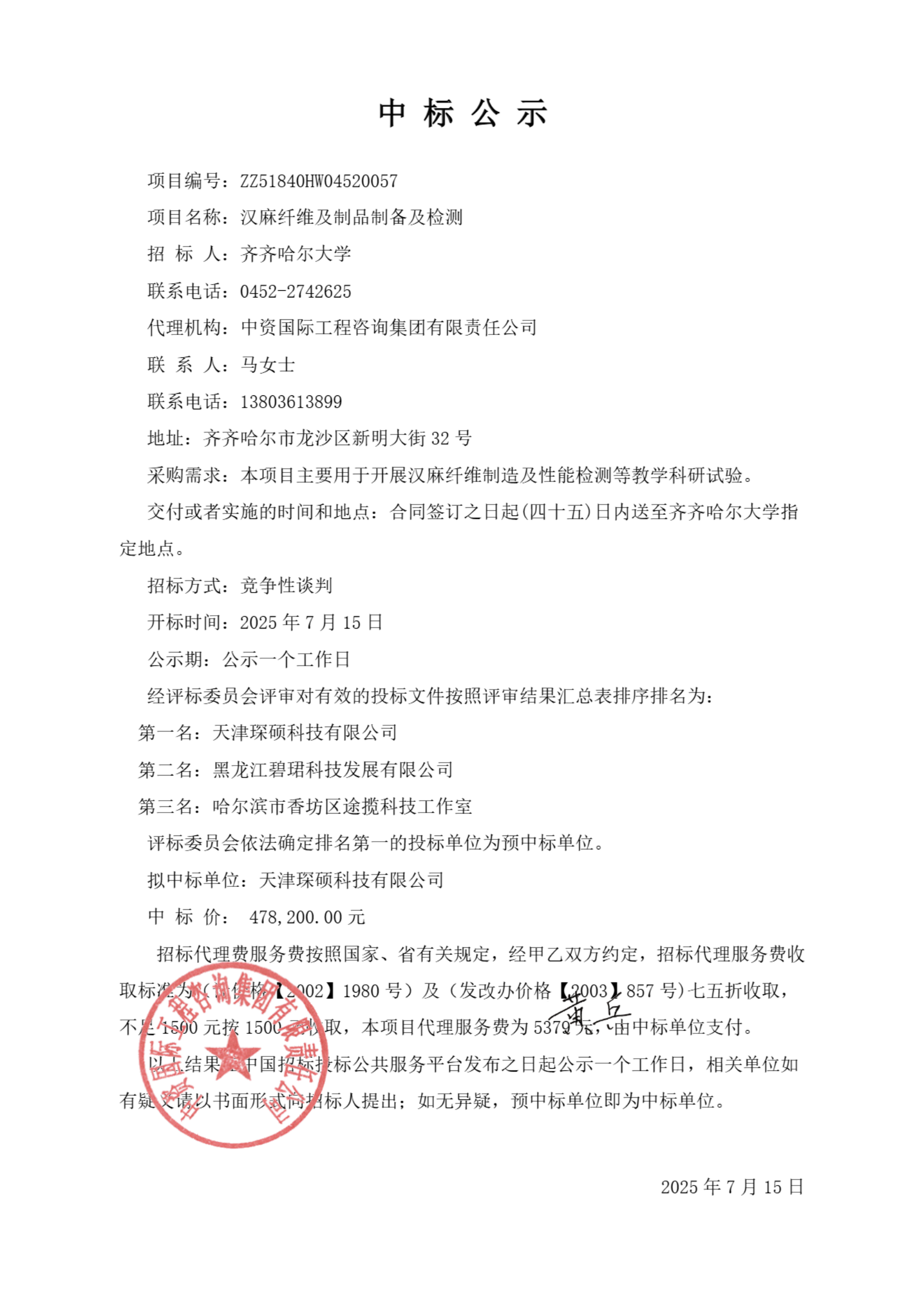 上一条:beats365唯一官方网站植物性食品加工技术优势特色学科分析检测仪器设备采购项目中标(成交)结果公告(转自黑龙江省政府采购网)