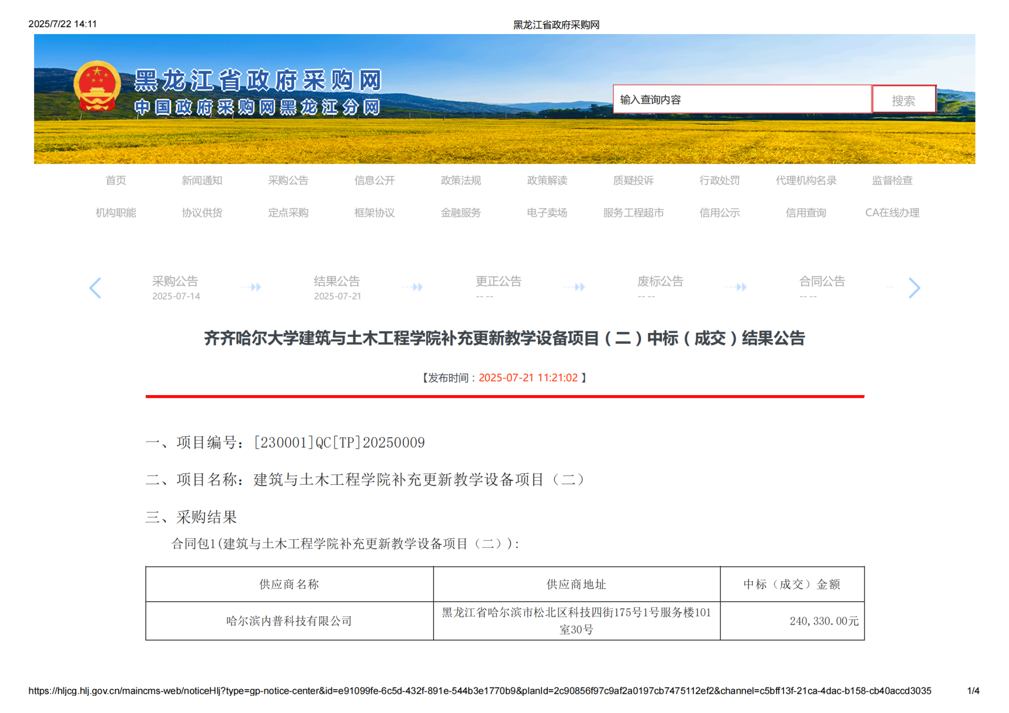 下一条:beats365唯一官方网站建筑与土木工程学院补充更新教学设备项目(一)中标(成交)结果公告(转自黑龙江省政府采购网)