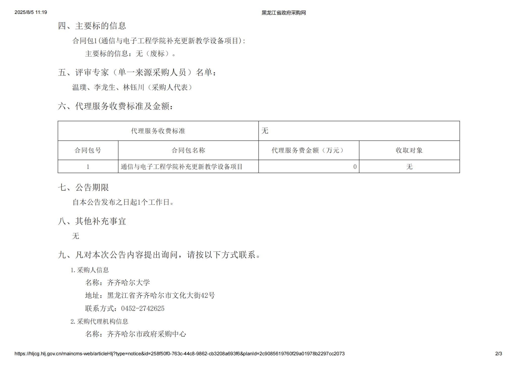 下一条:体育学院更新补充教学设备项目(二次)流标公告(转自中国招标投标公共服务平台)