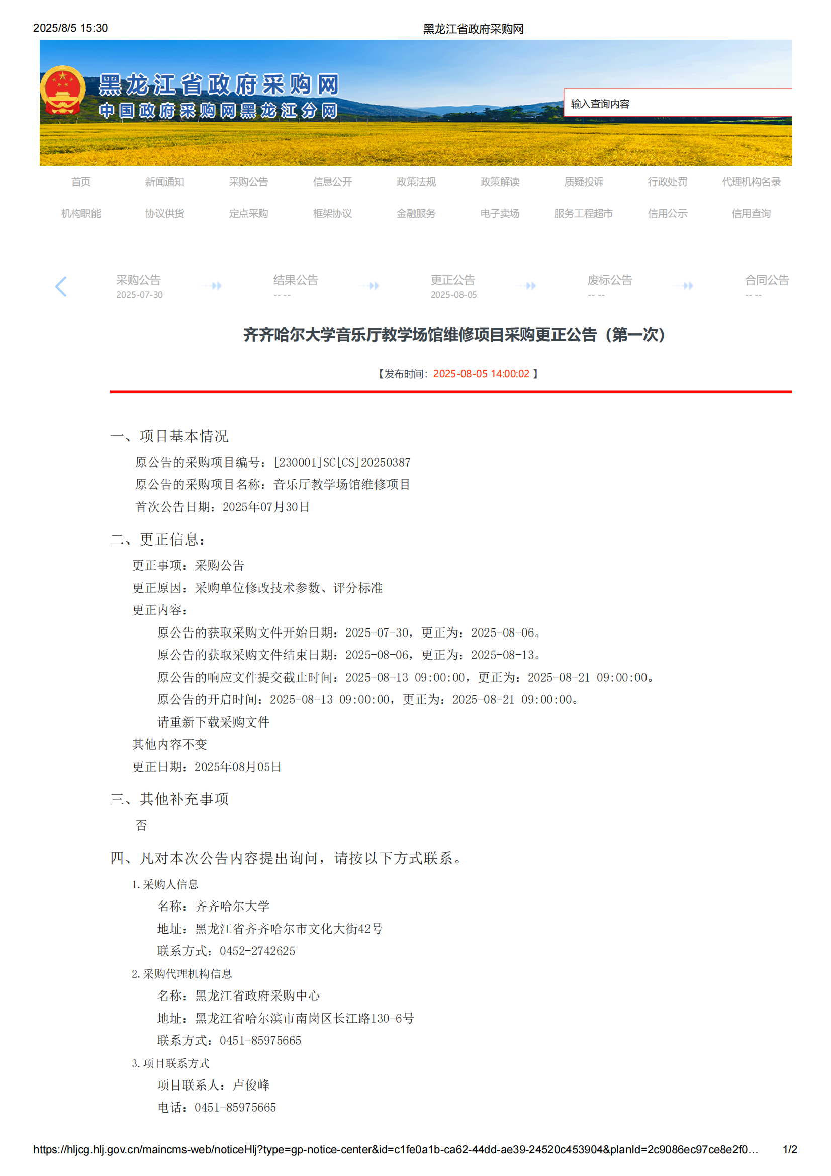 下一条:beats365唯一官方网站音乐厅教学场馆维修项目竞争性磋商公告(转自黑龙江省政府采购网)