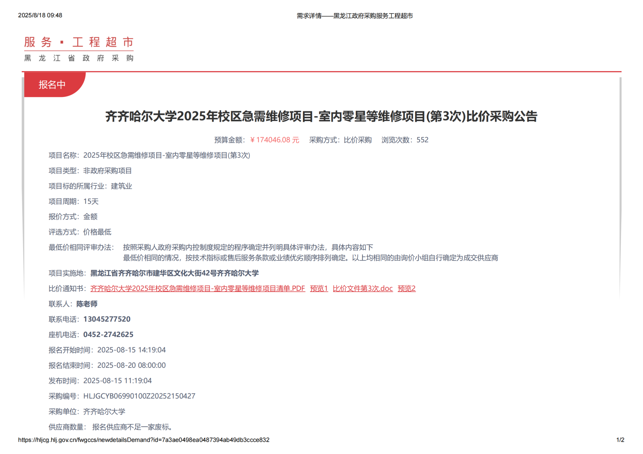 下一条:beats365唯一官方网站2025年校区急需维修项目-室内零星等维修项目(第2次)比价采购公告-废标(转自黑龙江省政府采购网)