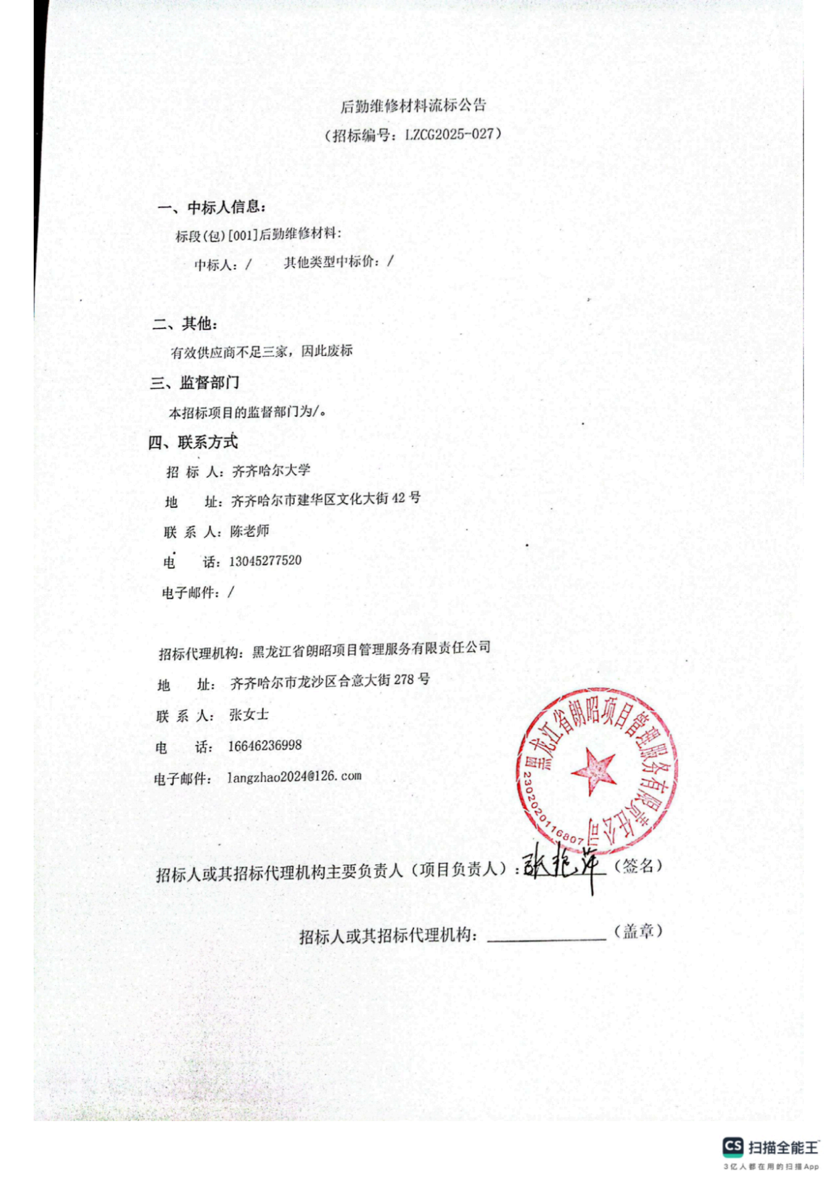 下一条:理学院实验杂品采购(二次)询价公告(转自中国招标投标公共服务平台)