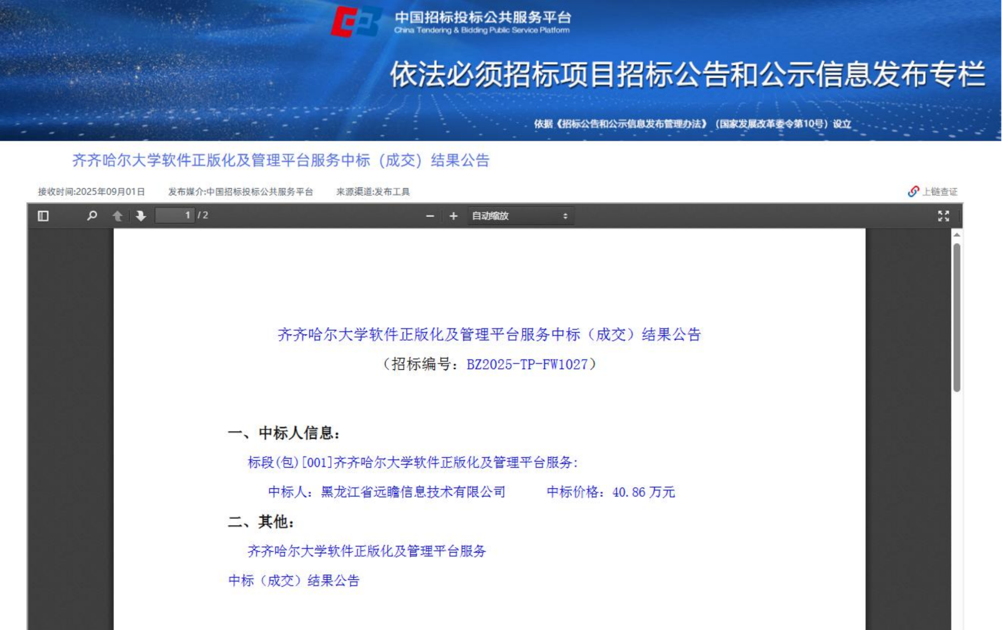 下一条:后勤维修材料(二次)询价公告(转自中国招标投标公共服务平台)