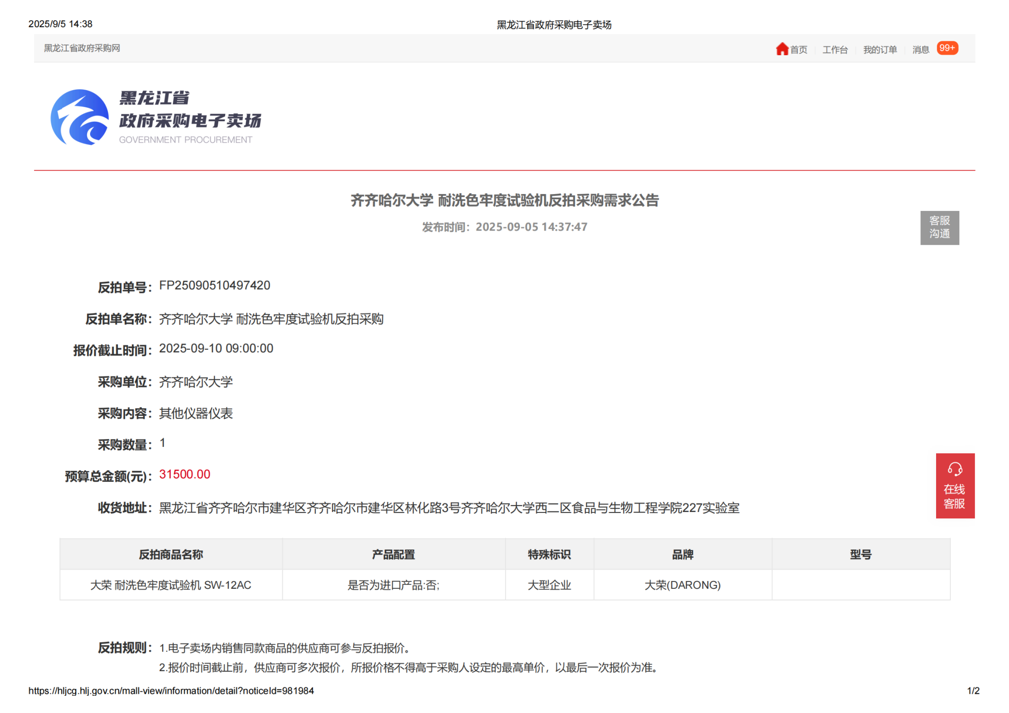 下一条:beats365唯一官方网站耐洗色牢度试验机反拍采购废标公告(转自黑龙江省政府采购网)