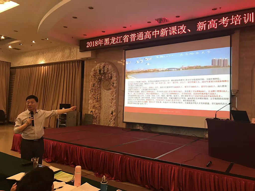 根据《黑龙江省教育厅办公室关于举办2018年全省普通高中新高考培训班的通知》和《黑龙江省教育厅办公室关于举办全省普通高中生涯规划教育骨干教师培训班的通知》要求,5月12日-14日,我省举办了四期“2018年黑龙江省普通高中新课改、新高考培训项目培训班”,同时还举办了两期“黑龙江省普通高中学生生涯规划教育骨干教师培训班”,来自全省各地高中的校长、副校长800余人以及生涯教育骨干教师400人参加了培训。