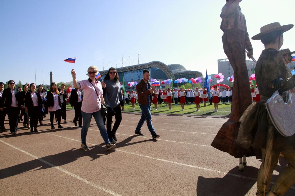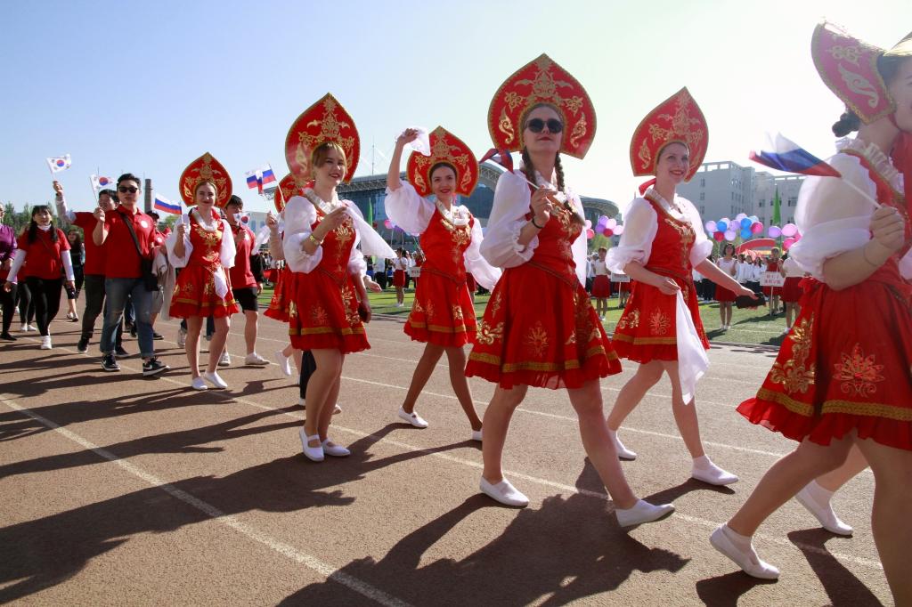 来访师生穿着富有俄罗斯民族特色的服装跟随国际教育学院方队,接受了大会检阅。