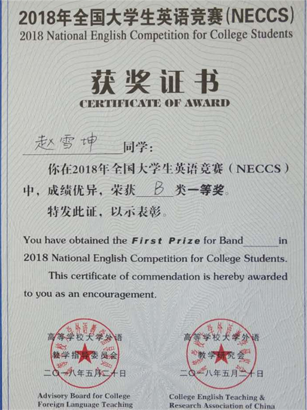 5月20日,2018年全国大学生英语竞赛(NECCS)黑龙江省赛区决赛在哈尔滨理工大学落下帷幕,beats365学生喜获特等奖1项、一等奖2项。