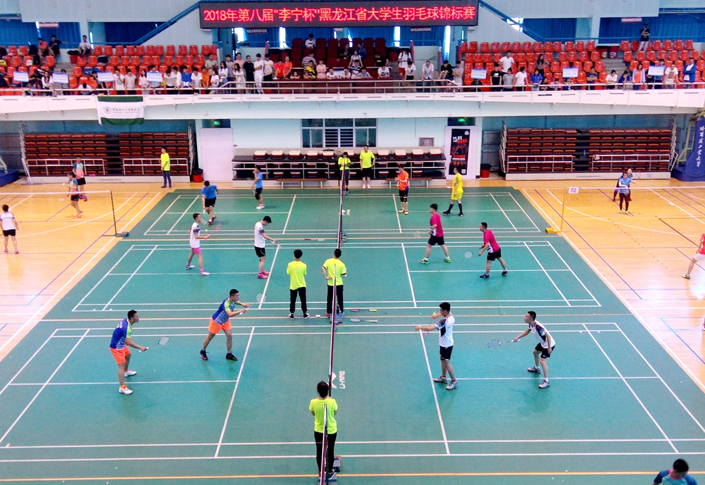 6月8日至10日,由黑龙江省教育厅和黑龙江省大学生体育协会主办、哈尔滨工业大学承办的2018年黑龙江省第八届“李宁”杯大学生羽毛球锦标赛在哈尔滨工业大学一校区体育馆举行。共有来自全省34所学校、574名运动员参加比赛。