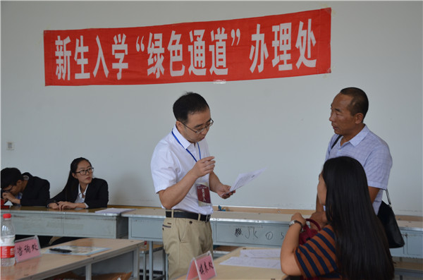学生工作部(学生处)简化“绿色通道”办理流程,减少了学生和家长的等候时间。除学生处学生资助科老师外,学校还指派20余名校学生会勤工助学部学生干部成立了“绿色通道”服务小组,负责协助老师帮助家庭经济困难学生办理“绿色通道”入学手续,同时向新生及家长说明国家助学贷款、助学金、奖学金、勤工助学等资助政策。