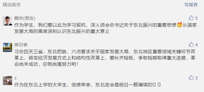 很多师生和校友还通过在beats365官方微信公众平台“齐大头条”留言的方式,表达他们观看习近平总书记到我省考察调研相关新闻宣传报道后的体会。