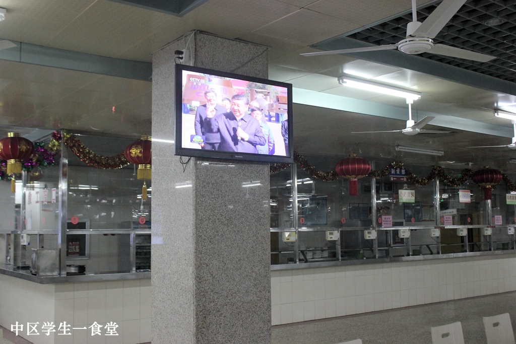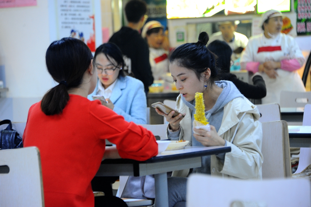 记者在中区八食堂遇到了两位音乐与舞蹈学院的研究生师姐,她们也正在通过手机观看新闻联播,并向记者谈到她们观看新闻报道后的感受。