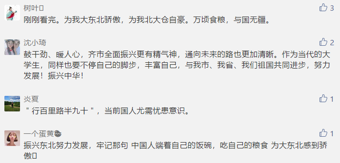 网络信息中心孙家良老师表示,东北的秋天是个丰收的季节,习近平总书记这个时候来看东北的大农业和大工业就是给东北鼓劲,看看东北转型之后的发展,看习总书记的重要讲话,对东北还是挺有信心的。