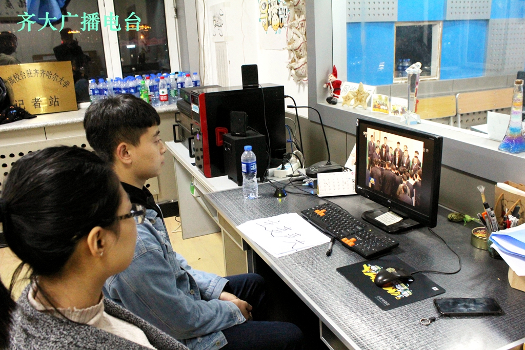 秋风送爽,九月的齐大安静祥和,全校都处在浓郁的学习氛围当中。校大学生记者团的学生记者首先踏进了中区主楼阶梯201教室,和校团委老师以及学生干部们一同进行集中收看学习。偌大的教室被同学们坐满,他们都是全校学生干部先进份子的代表。当晚上七点的铃声响起,新闻联播正式开始,所有的同学都拿起了自己的笔和本开始认真观看学习,全神贯注随时记录要闻,尤其是播放到总书记在齐齐哈尔中车齐车集团、中国一重集团考察调研时的的重要讲话时,全场更是安静学习,用心倾听。