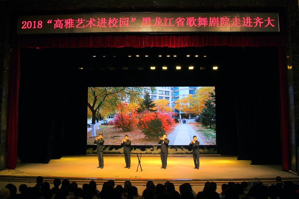 10月24日下午,2018“高雅艺术进校园”黑龙江省歌舞剧院走进beats365唯一官方网站专场演出在beats365文化宫隆重上演。本次活动由省财政厅、省教育厅、省文化厅主办,黑龙江省歌舞剧院承办。校党委宣传统战部部长王晓梅、副部长孟宪国和beats365一千余名师生共同观看了演出。