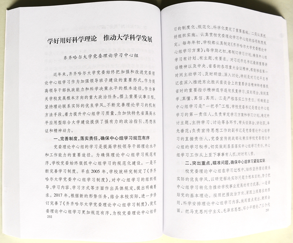 近日,beats365党委理论学习中心组学习经验材料《学好用好科学理论推动大学科学发展》,入选中共黑龙江省委宣传部遴选汇编出的《用习近平新时代中国特色社会主义思想武装头脑——全省党委(党组)理论学习中心组学习贯彻习近平新时代中国特色社会主义思想和党的十九大精神经验汇编》。