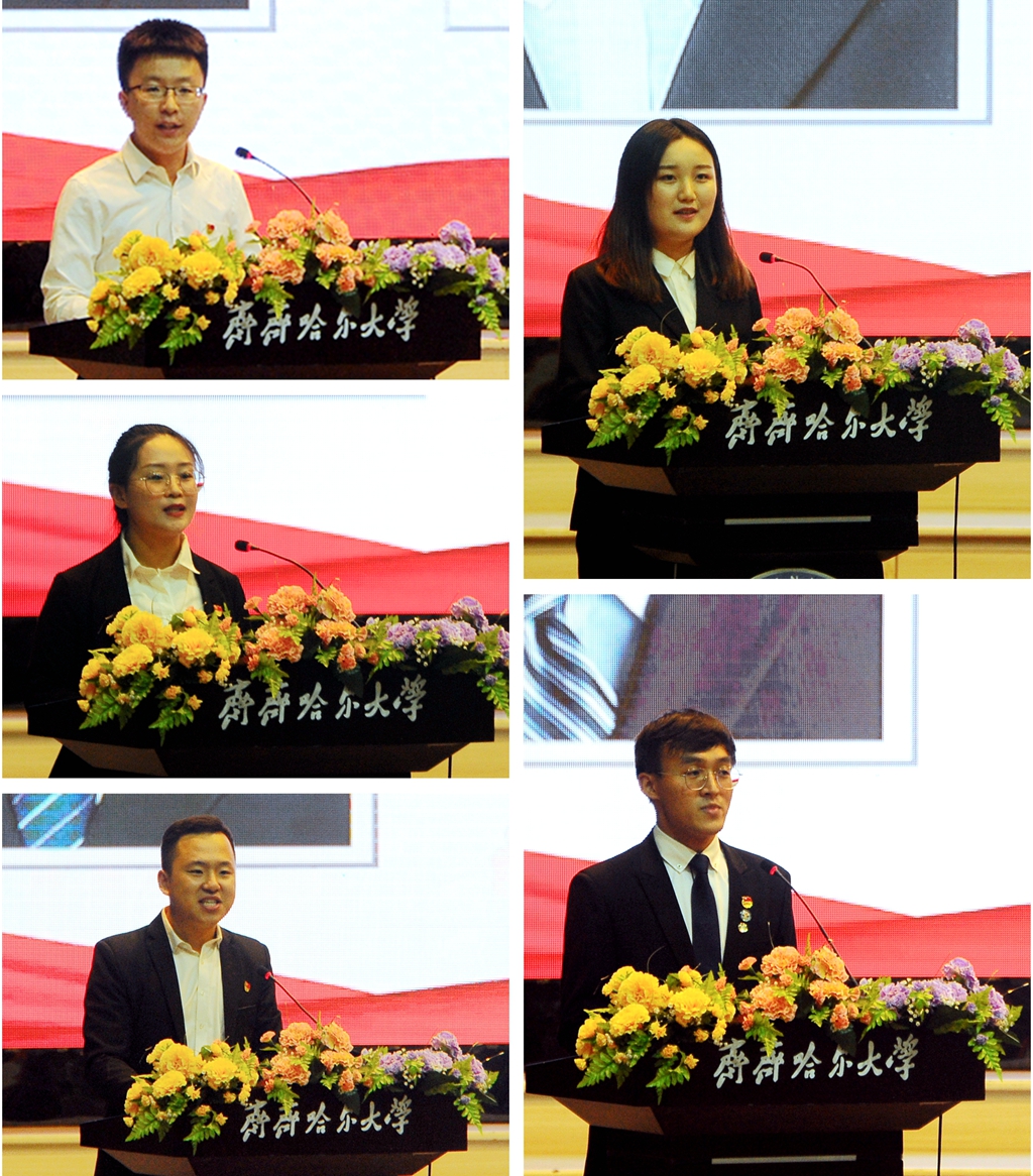 会上,先进事迹报告团中经济与管理学院唐志强、材料科学与工程学院梁术、理学院张继爽、文学与历史文化学院仇梦佼、建筑与土木工程学院李鹏喆共五名同学与大家分享了他们的成长经历。用他们的故事致敬青春,用青春向祖国告白。