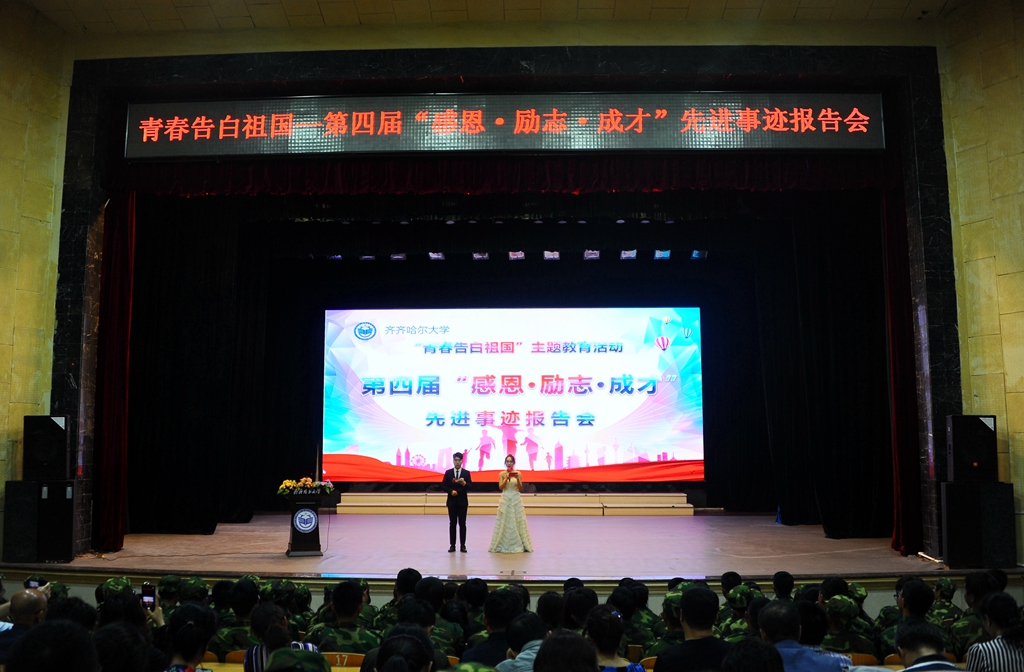 9月9日下午,青春告白祖国—第四届“感恩•励志•成才”先进事迹报告团首场报告会在文化宫举行。各相关职能部门负责人、各学院主管学生工作领导以及1300余名大一新生参加了报告会。