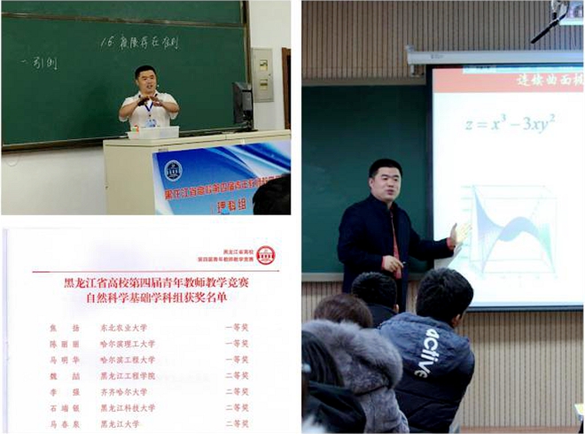 2017年暑期,黑龙江省高校第四届青年教师教学竞赛在哈尔滨工业大学举行,李强参加了这个竞赛。按照要求,随机抽取同一门课程的20个课时中的某一节,作为竞赛授课内容,授课时长的规定是20分钟,误差在30秒内为最佳。作为理科组教学竞赛的第一个上台讲课的人,当李强说出“这堂课就到这里,同学们再见”来结束讲解的时候,工作人员报出了课程讲解的时长:“第1号选手讲课时长为19分57秒。”为期两天的赛事紧张有序的进行着,各院校选手们精彩的教学展示,将比赛推向一个又一个高潮。最终他获得了这次教学竞赛的二等奖。