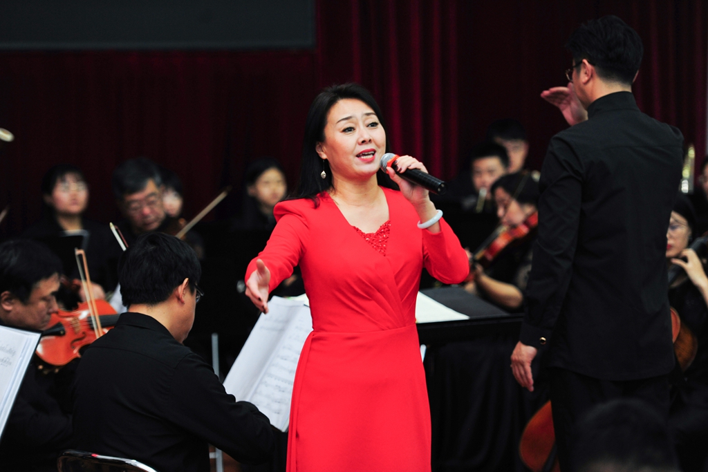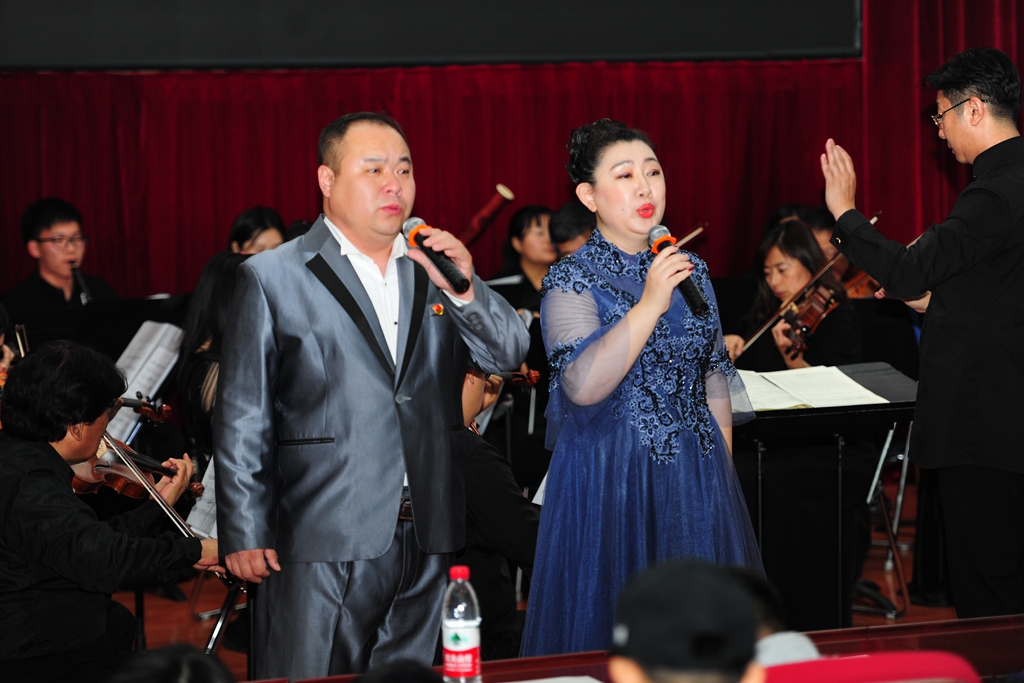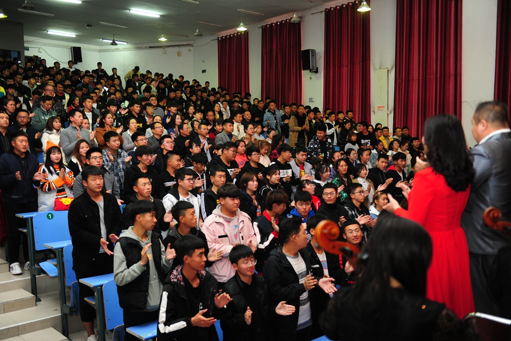 殷进良演唱的歌曲《祖国万岁》,以深情倾诉的抒情特质,清新真挚的旋律语言,表达了对祖国、对中华民族的深厚情感,唱出了亿万中华儿女对祖国母亲的大爱情怀。“不忘初心,继续前进,万水千山最美中国道路……”初心源于苦难、初心孕于文化、初心立于精神,初心成于奋斗。孙博、陈晓鹏倾情演唱的新时代金曲《不忘初心》,用质朴的歌词在音乐会上唱响了新时代最强音,赢得在场千余名师生的热烈掌声。