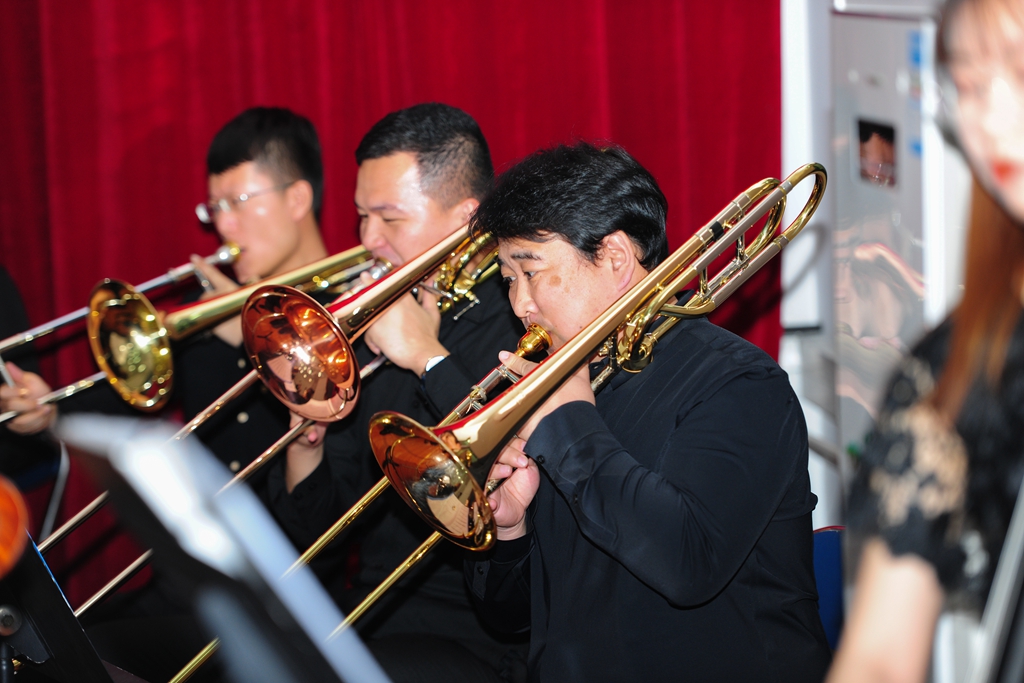 兼收并蓄,为我所用是本场音乐会的又一亮点。于洋演奏的音乐作品《查尔达什》是在匈牙利广为流传的著名合奏曲,乐曲充分展现了匈牙利人民生活的民俗画面。陈丹丹、邓重博带来的男女声二重唱《追寻》,是电影《建国大业》的主题曲。他们浑厚美妙的歌声吹响了奋进新时代的号角,激励齐大人踏着前辈的足迹去追寻民族复兴的中国梦。