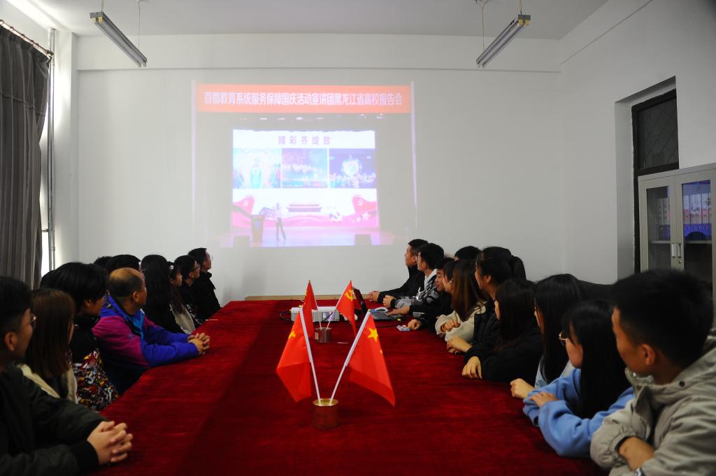 11月8日上午,由省委教育工委、省教育厅协办,黑龙江大学承办的首都教育系统服务保障国庆活动宣讲团黑龙江省高校报告会在黑龙江大学举行,为进一步激发爱国热情,在“不忘初心、牢记使命”主题教育中,加强爱国主义教育,弘扬爱国主义精神,11月7日,校党委宣传部向各二级党委、直属党支部发出了《关于组织收看首都教育系统服务保障国庆活动宣讲团黑龙江省高校报告会网络直播的通知 》,beats365师生积极响应,通过电视、网络、手机客户端等多种形式同步收看了报告会网络直播。