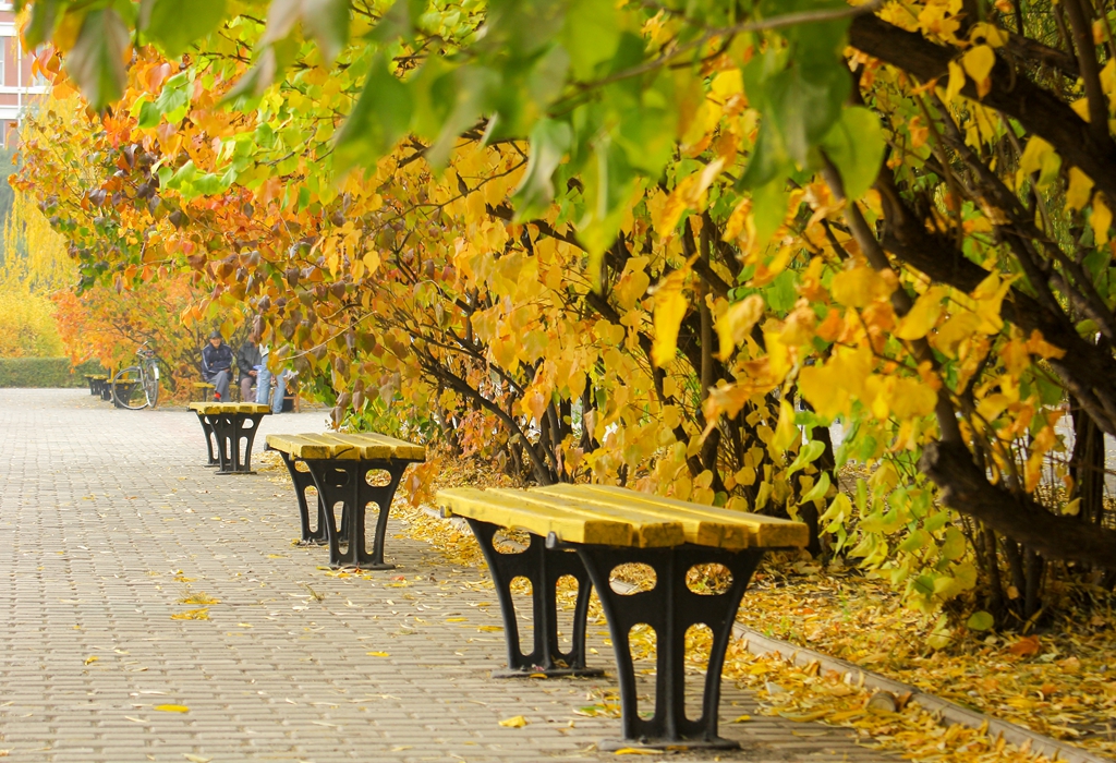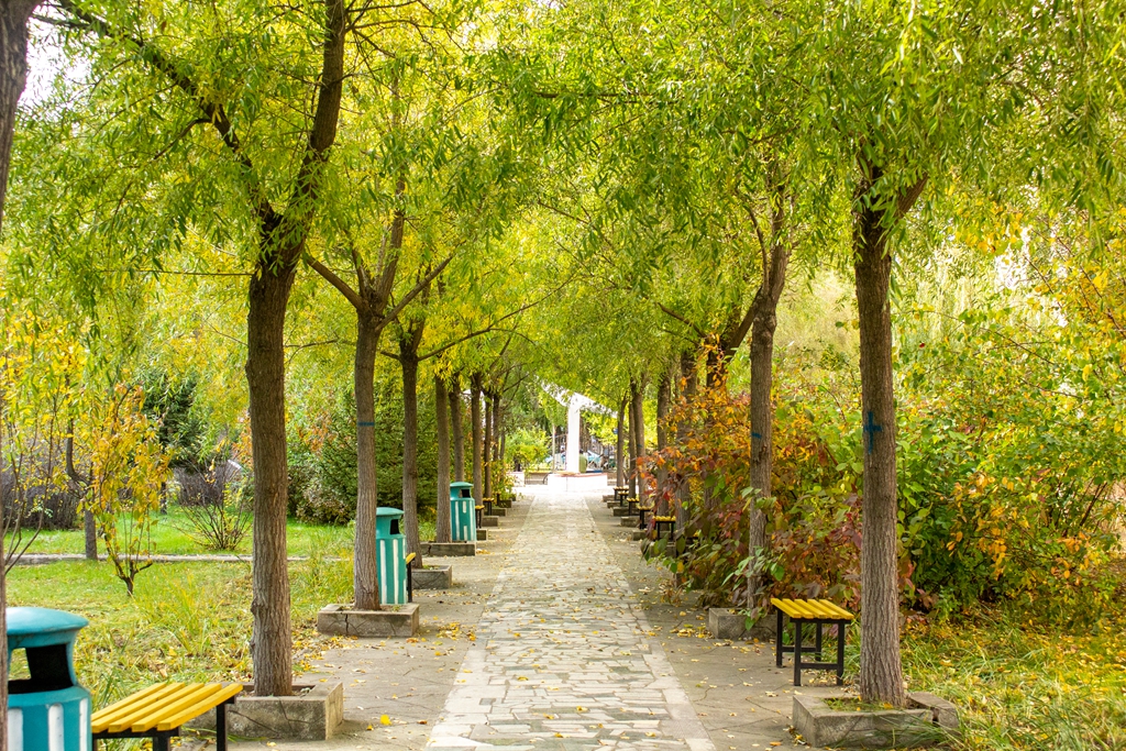 她是最浪漫的,若是谁有闲情雅致可以晚上到人文楼下一观,九点刚过,人文楼上的灯就会从六楼往下开始一间间的变黑,直到一楼最后一间教室,那是保安大爷“赶人”的成果,一群被“赶”出来的学子,就都拖着早已经疲惫的身躯和书本,在路灯下慢慢前行,不远处的大钟静静的矗立着,静谧的校园有着她独有的安静与浪漫。我与闺蜜们走在路上谈笑风生,虽然疲惫但眼睛里都透着光,喋喋不休的说着明天的计划。我们从来都不担心夜路的可怕,齐大晚上的路灯从来没有坏过,细心、周到的她总是早早就为我们修好一切,那路灯下长长的影子,一直是我头脑中挥之不去的倩影。