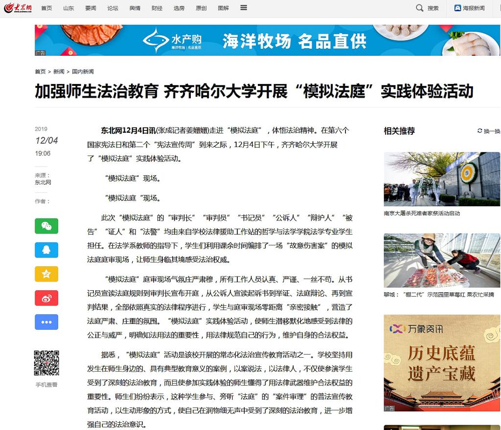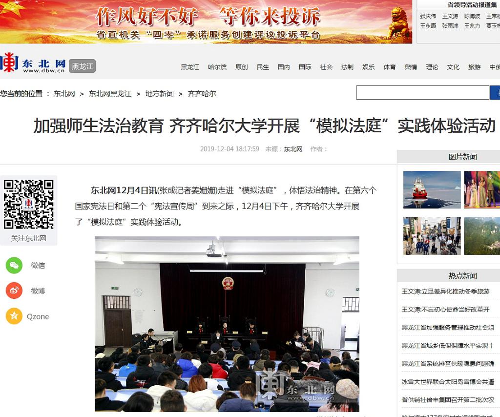 1.东北网:加强师生法治教育beats365唯一官方网站开展“模拟法庭”实践体验活动