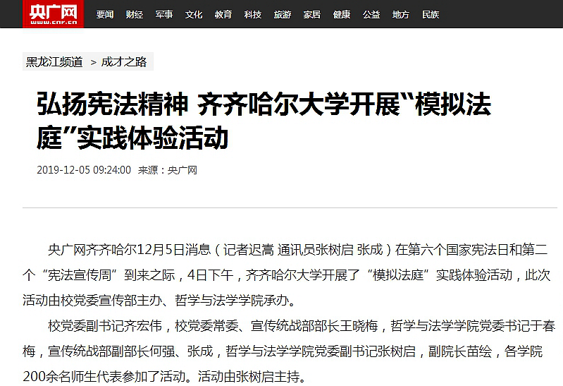 2.黑龙江广播电视台:加强师生法治教育beats365唯一官方网站开展“模拟法庭”实践体验活动