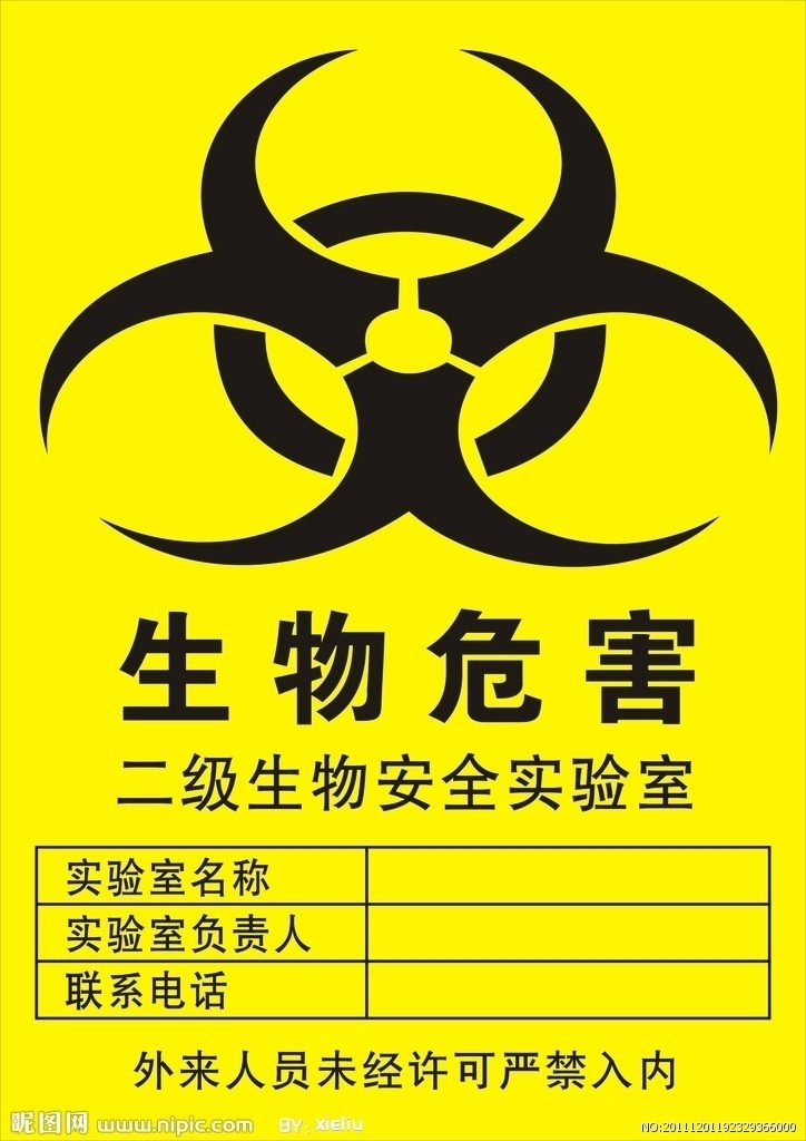 4.有实验动物、微生物的实验室须在室内外醒目位置张贴危险警示标识;