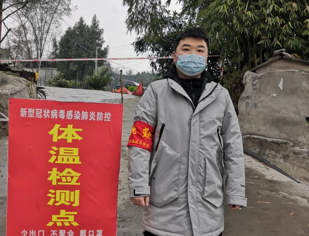 伏桃是生命科学与农林学院生物182班的入党积极分子,家住四川省南充市南部县晓霞村。2020年的春节假期他过得格外忙碌而充实。大年初一,伏桃就在党员姑父的帮助下,报名成为了抗击疫情志愿者,跟随滨江办事处的工作人员在南部客运站,对下车人员进行体温检查,对体温异常人员进行登记,并及时上报给客运站负责人。随着疫情的发展,大年初四,伏桃的家乡晓霞村采取了封村措施,他便开始在村口对过往车辆和行人进行登记、测量体温,不让任何一个有异常的人员进入村子成为了他的工作宗旨。“我相信只要每个人都肯为防控疫情出力,我们就一定能很快打赢这场疫情阻击战。”伏桃说。