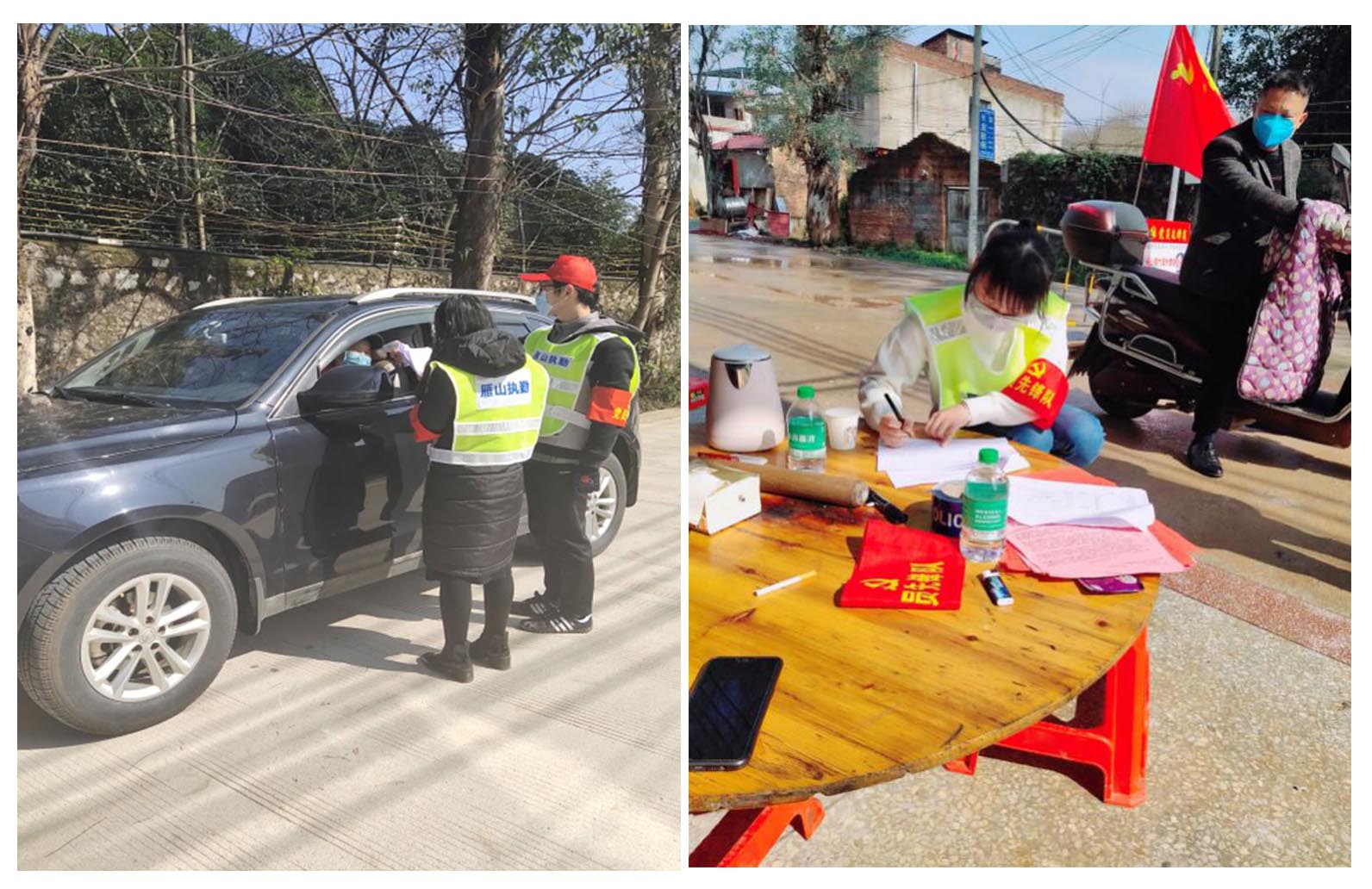 刘雯慧是化本171班学生,得知疫情爆发后,她主动请战,写好请战书,带好青年先锋队袖标,加入到桂林市雁山镇返乡大学生新冠肺炎防控志愿队。根据村委安排,她在村口的检查站参与执勤工作,登记每日进出人员和车辆,详细记录其去向信息,核查登记人次,协助处理紧急事件等。对于不必要的进出进行耐心的劝阻,向村民们宣传提醒戴口罩、勤洗手、不乱走动等防疫知识。作为一名共青团员,在组织和人民需要的时候,刘雯慧觉得自己理应冲锋在前,与广大战斗在一线抗击疫情的同志们一起,为疫情防控贡献自己的一份力量,共同打赢这场没有硝烟的疫情攻坚战。