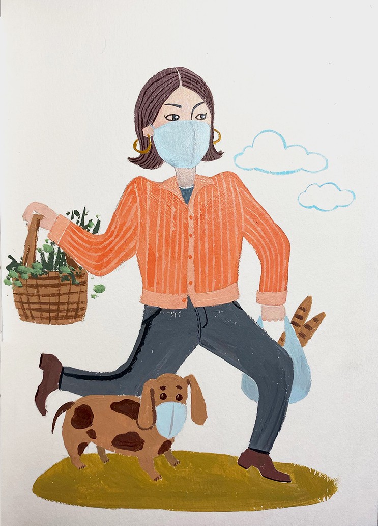 创作简介:疫情期间所有百姓自觉在家隔离,出门买菜不仅自己做好防护措施,甚至给宠物也做好防护措施。这不仅是为自己的身体健康,更是为了大家的健康。响应国家号召,从每个人做起。