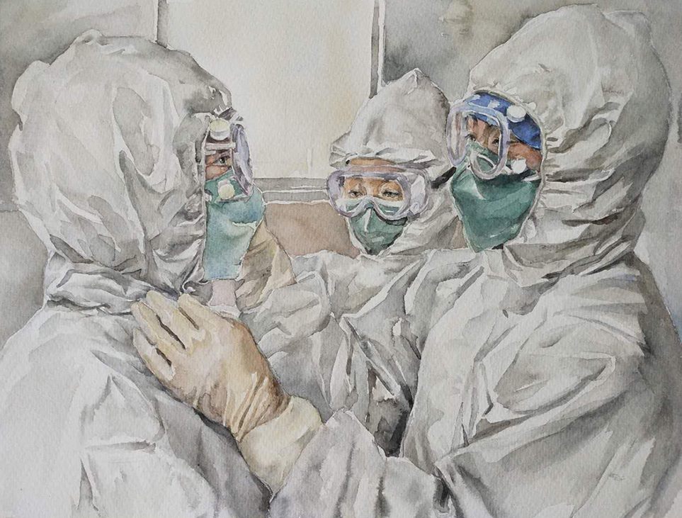 《抗疫英雄日记——最美容颜》水彩 马涛