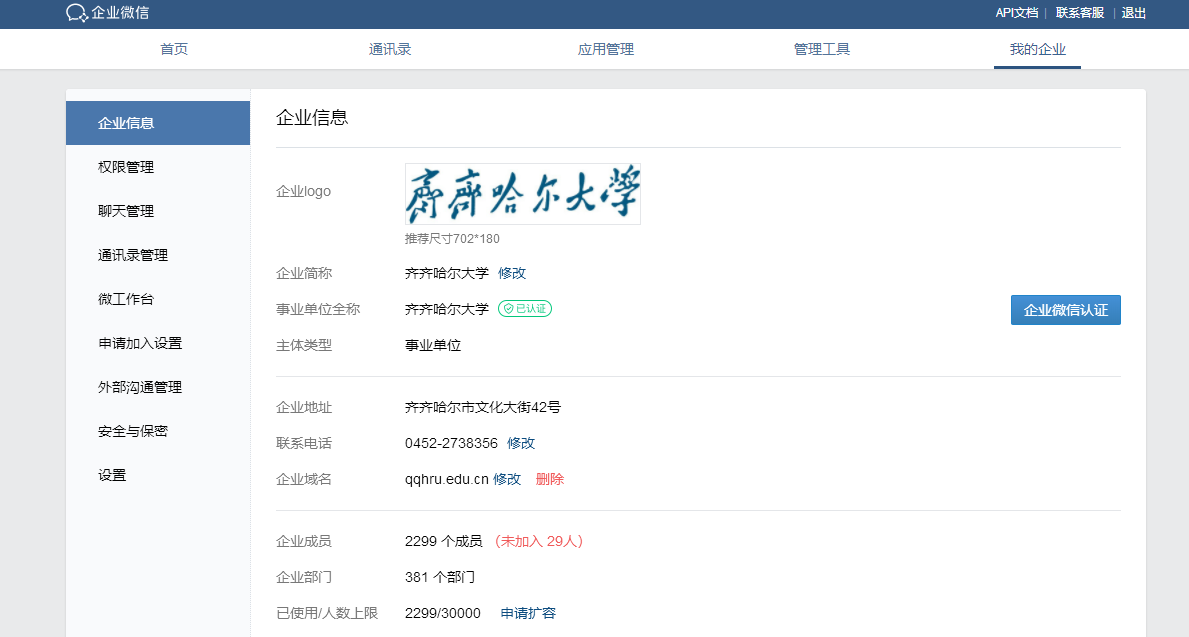 完成企业微信平台的搭建。从2月11日开始,网络信息中心开始搭建“beats365唯一官方网站企业微信”平台,由于企业微信以学校的基本组织结构为基础单位,每名教师都要在组织结构中落实到科室、系部等,因此,落实任务人员多、工作量很大,网络信息中心设置了孙涌泉、祝文生、孙家良、李玲玲等4名系统管理员,学校各单位设置1名管理员对本单位人员进行邀请、加入、分类、管理,同时在线开展使用答疑、操作培训、技术问题处理。在所有同志的配合下,用了三天时间,将2299名教职工加入企业微信平台,为下一步智慧校园建设和信息化应用工作奠定了基础。制作企业微信视频会议教程文档加入微云盘共享,为各单位使用企业微信召开远程视频会议提供方便。
