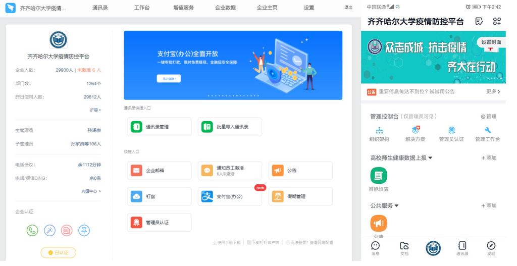 完成beats365唯一官方网站疫情防控平台的部署与数据上传。根据省教育厅文件精神,需要在全体师生中注册钉钉并依托钉钉搭建beats365唯一官方网站疫情防控平台,用于向黑龙江省教育系统疫情防控平台上报相关数据。20号接到任务,23号平台就要上线,时间紧任务量大,中心班子成员紧急动员几名党员作为管理员,分工负责beats365各部门师生的钉钉注册信息全面核实、子管理员培训、数据导入导出、人员激活、各单位的管理体系构建等工作。利用与完美数联疫情防控平台的对接,实现钉钉平台组织架构,再将师生的信息核对导入,对管理员各种操作培训,短短2天的时间,孙涌泉、祝文生、孙家良、宋峰、刘恩军持续奋战了近四十个小时,在23日早八点完成全校29930人的数据导入与激活工作,设计适合学校风格的钉钉用户界面,确保系统在23日开始正式上线运行,实现全校师生每日“一键”报告个人健康情况。