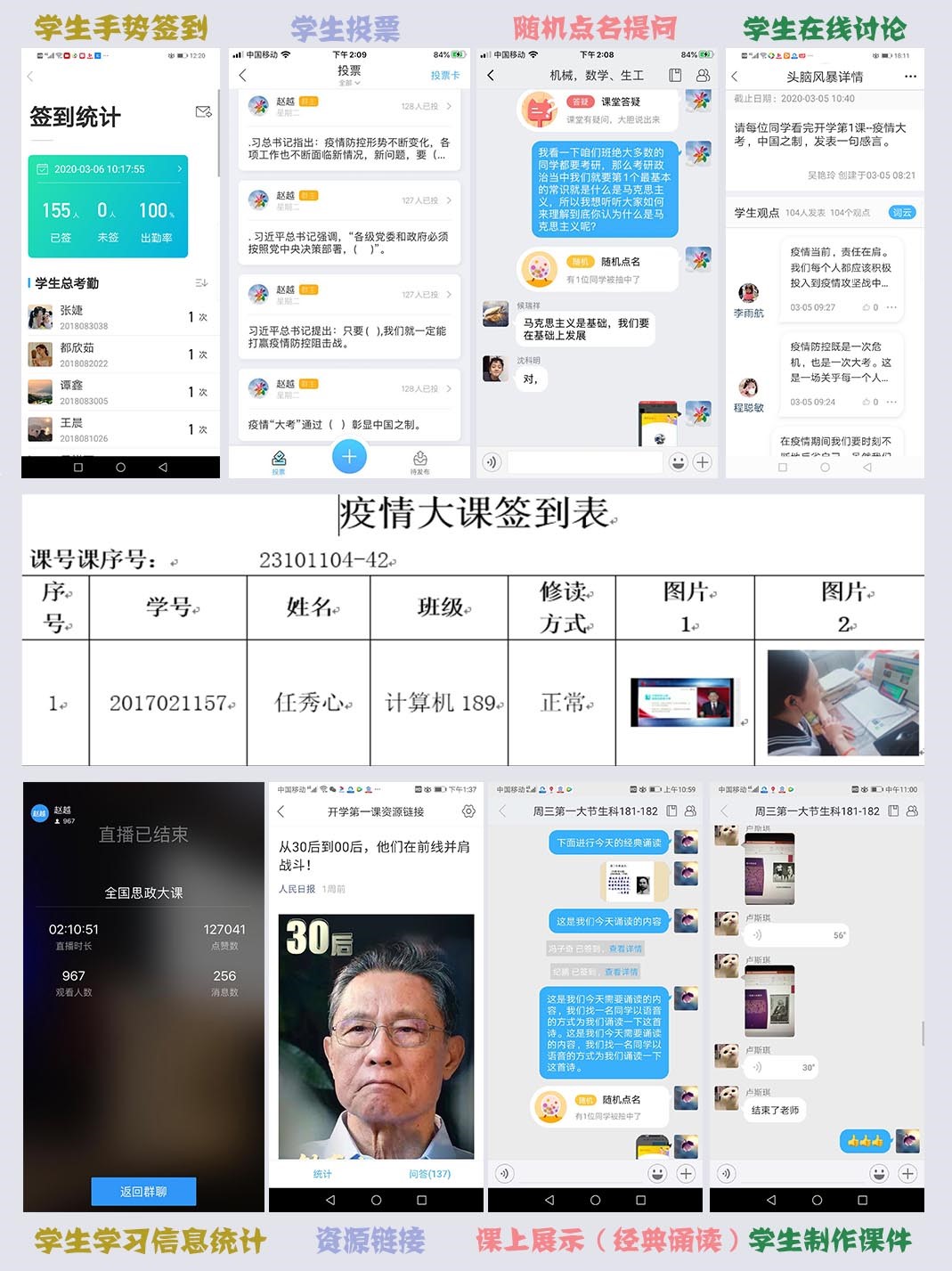 马克思主义学院积极发挥高校思政课落实立德树人根本任务的关键课程作用,通过开学第一课,彰显中国特色社会主义制度优越性;寻找“最可爱的志愿者”,培养大学生爱国担当精神;学生录制微课、制作PPT,讲好抗“疫”思政课;让历史与抗“疫”自接对话,增强“四个自信”;“云端”诵读经典,增强 “抗疫”思想动力等形式将“思政课战疫小课堂”专项活动与国家安全教育日宣传教育活动相结合,教育引导大学生弘扬爱国主义精神,增强“四个意识”,坚定“四个自信”,做到“两个维护”。
