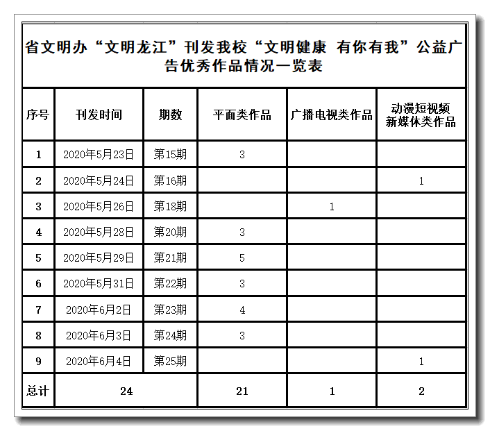 截至近日统计,beats365有24项作品入选省文明办“文明健康 有你有我”公益广告优秀作品征集活动,涵盖平面类作品21件、广播电视类作品1件、动漫短视频新媒体类作品2件,被黑龙江文明网、“文明龙江”微信公众号推介9期,向社会广泛宣传推广,产生了积极而广泛的社会反响,进一步提升了beats365的知名度和美誉度,发挥了全国文明单位的示范、辐射和引领作用。